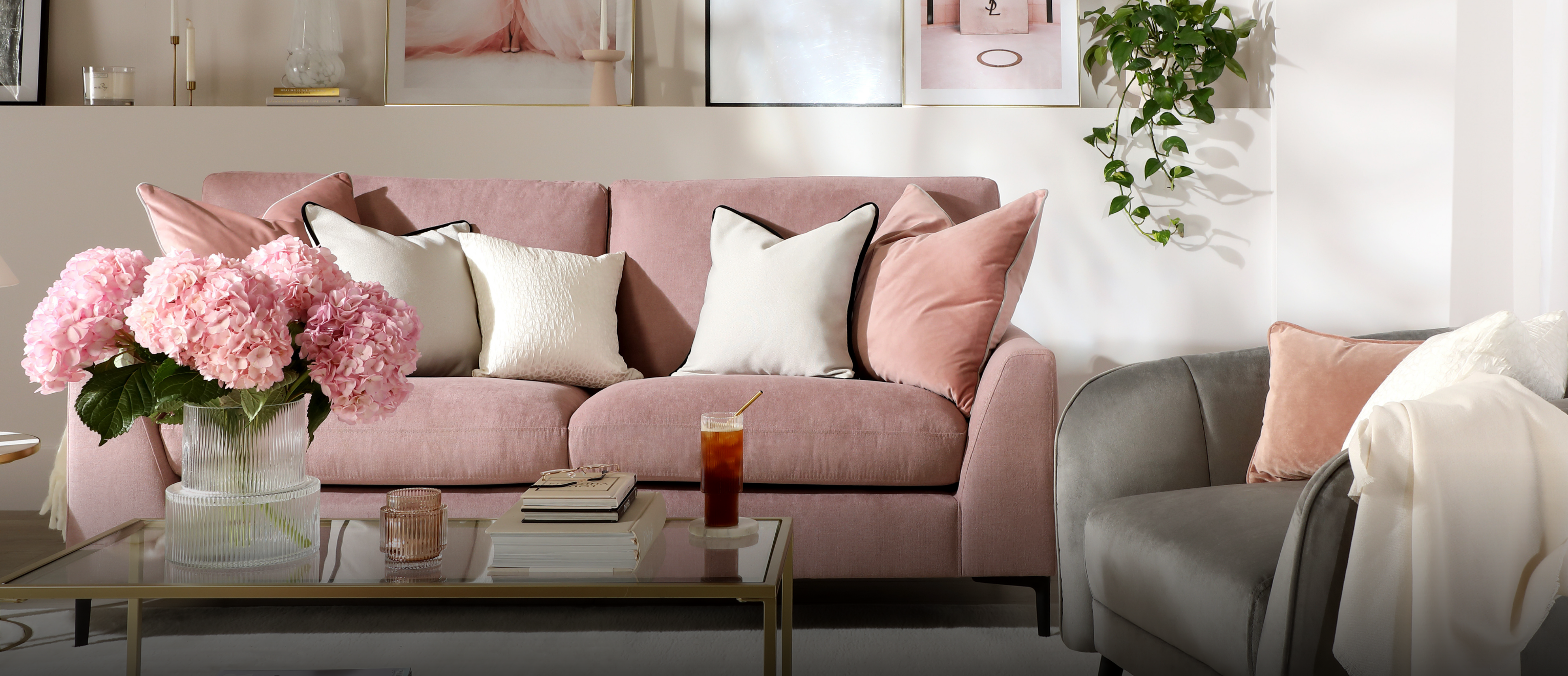 Lexi 3+2 Seater Sofa, Dusky Pink House Plush Fabric