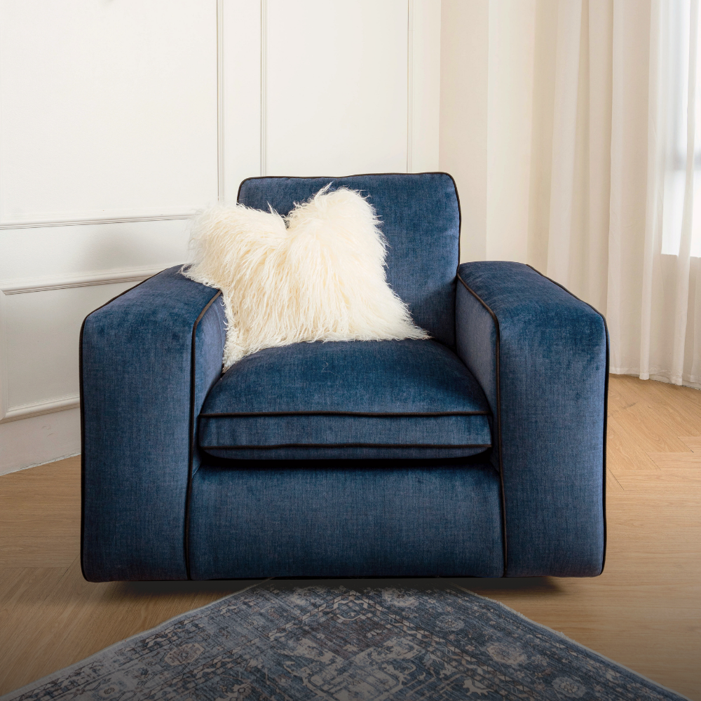 Lexi 3+2 Seater Sofa, Navy Blue House Plush Fabric