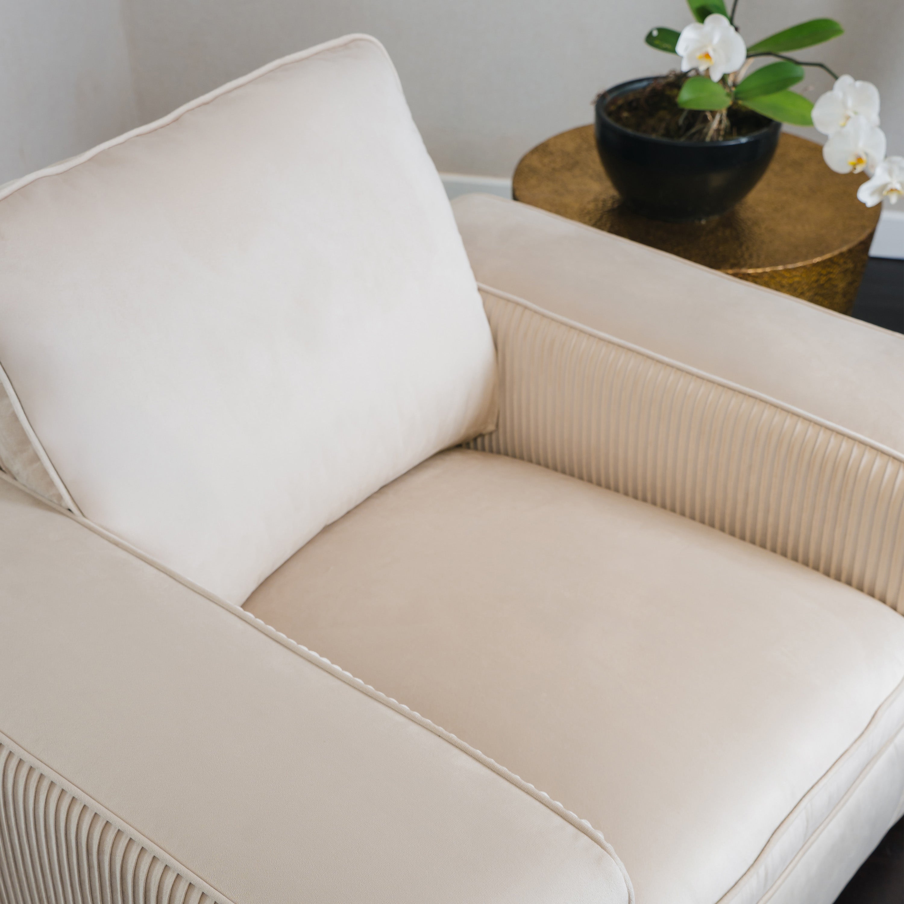 Alia Bastamam; Amaya Armchair, Slate Grey Pleated Premium Velvet