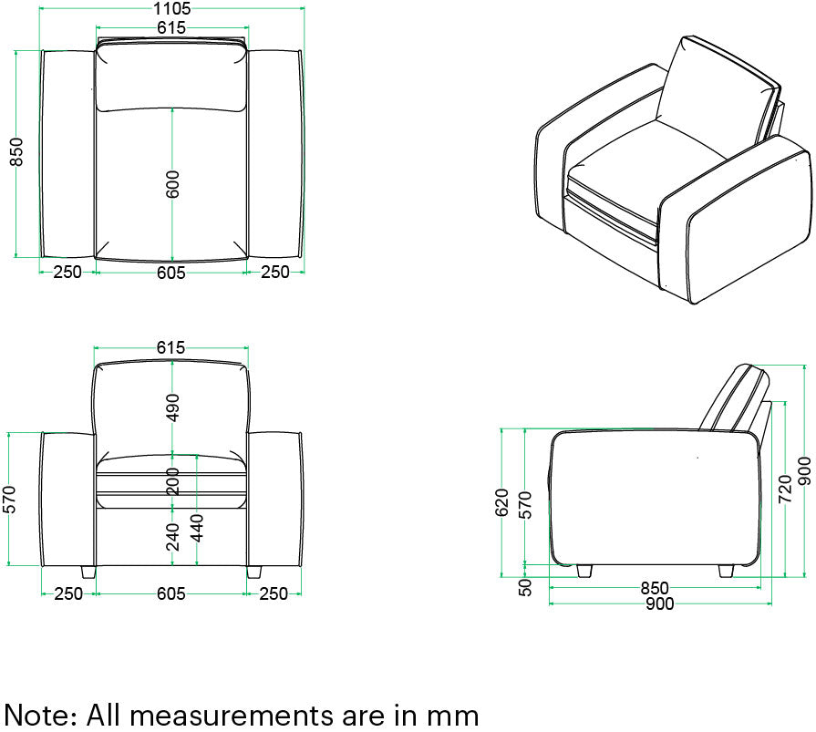• Upholstered in textured, ultra-soft weave with contrasting black piping