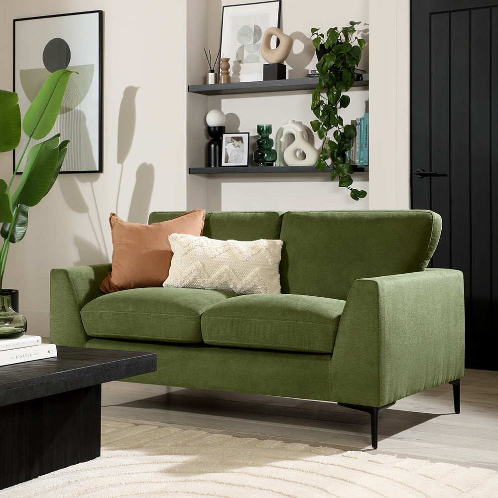 Lexi 2 Seater Sofa, Olive Green House Plush Fabric
