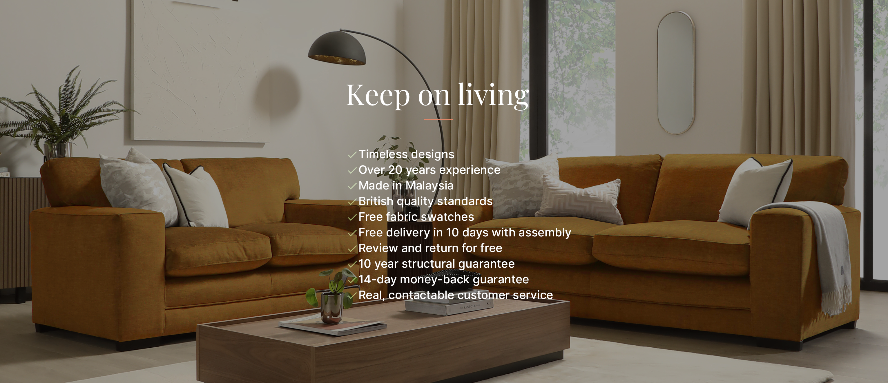 For over 20 years, we've brought the finest Malaysian craftsmanship to UK homes. Now, you can experience the same luxury right here! Our sofas are built to the same exacting British standards you expect, with the time-honoured Malaysian artistry you deserve.