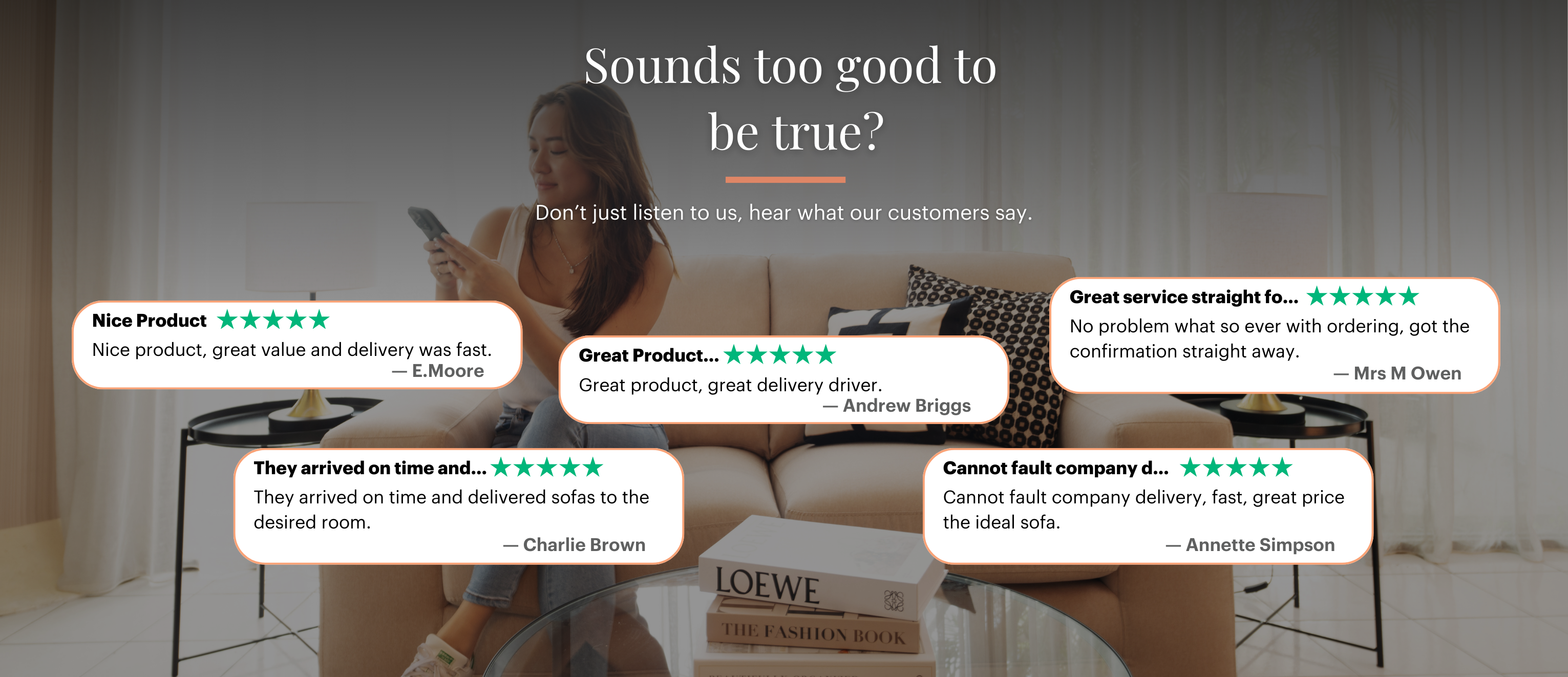 Buying furniture online comes with too many worries - What if it doesn't turn up? What if I don't like it?