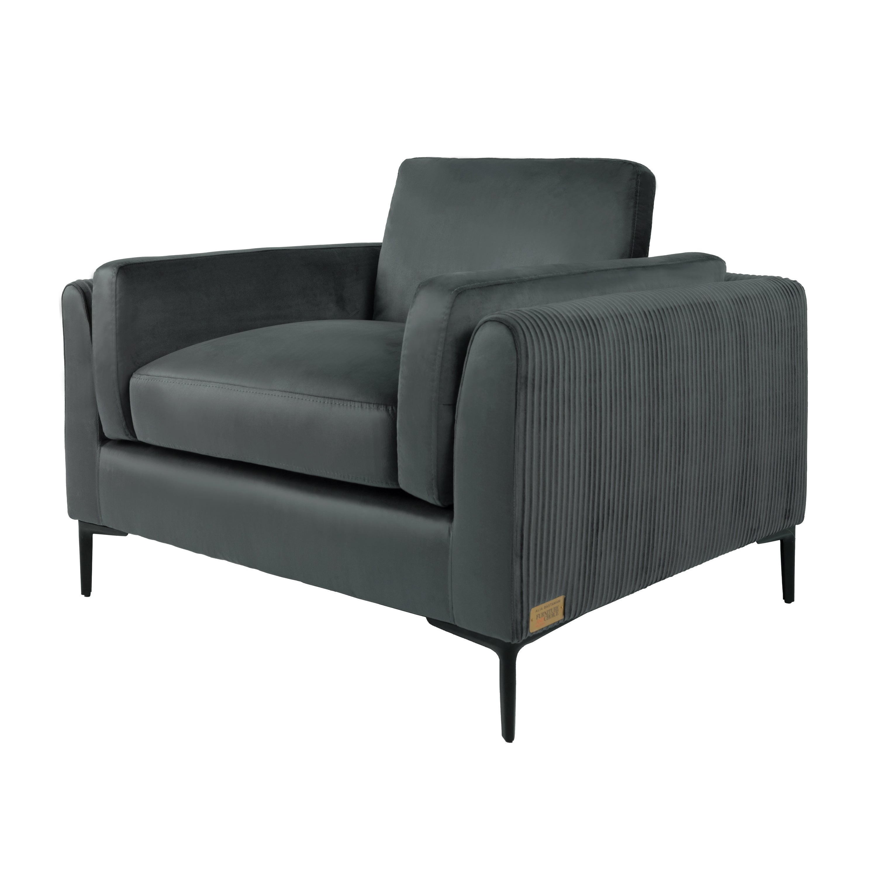 Alia Bastamam; Alta Armchair, Slate Grey Pleated Premium Velvet