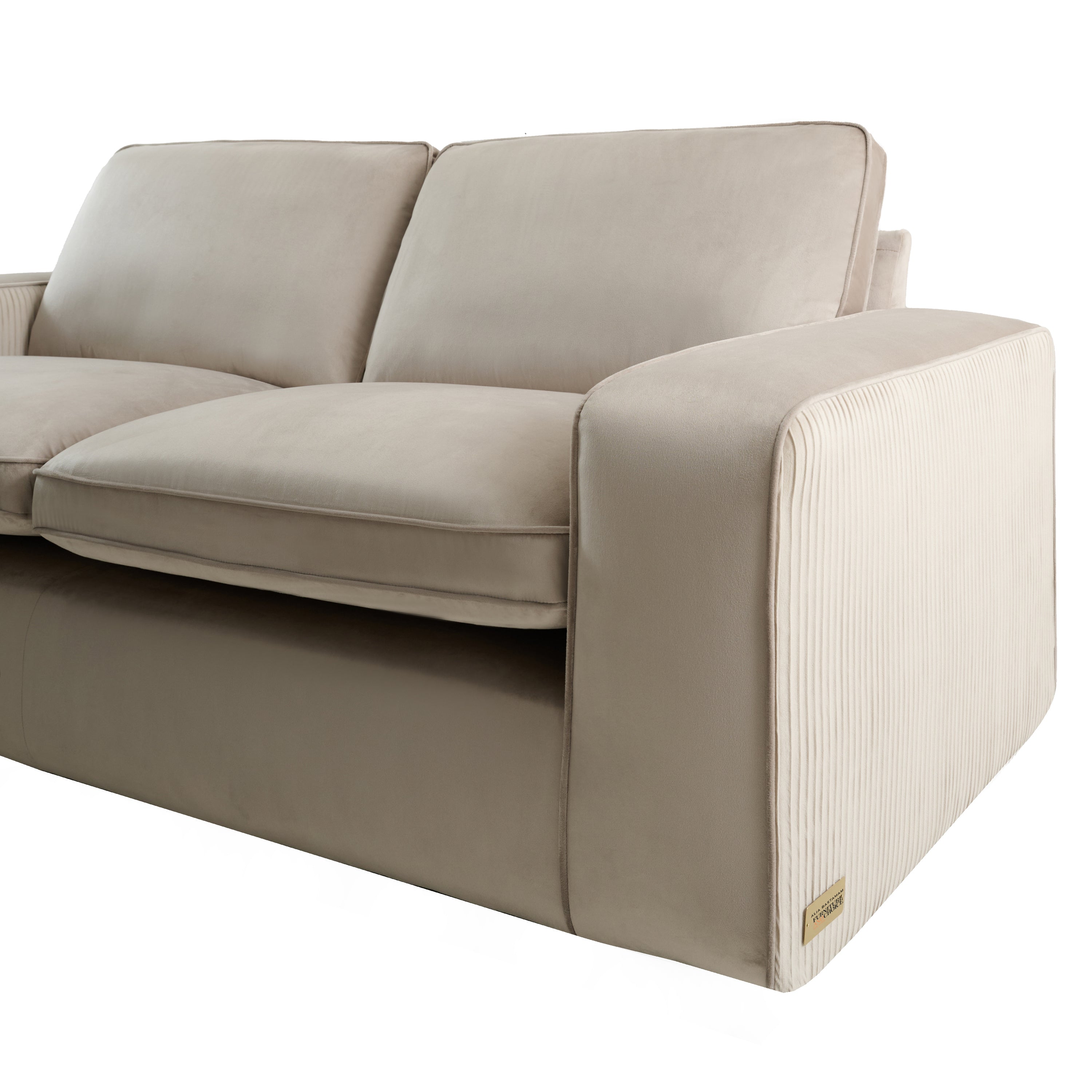 Alia Bastamam; Amaya 3+2 Seater Sofa, Taupe Pleated Premium Velvet