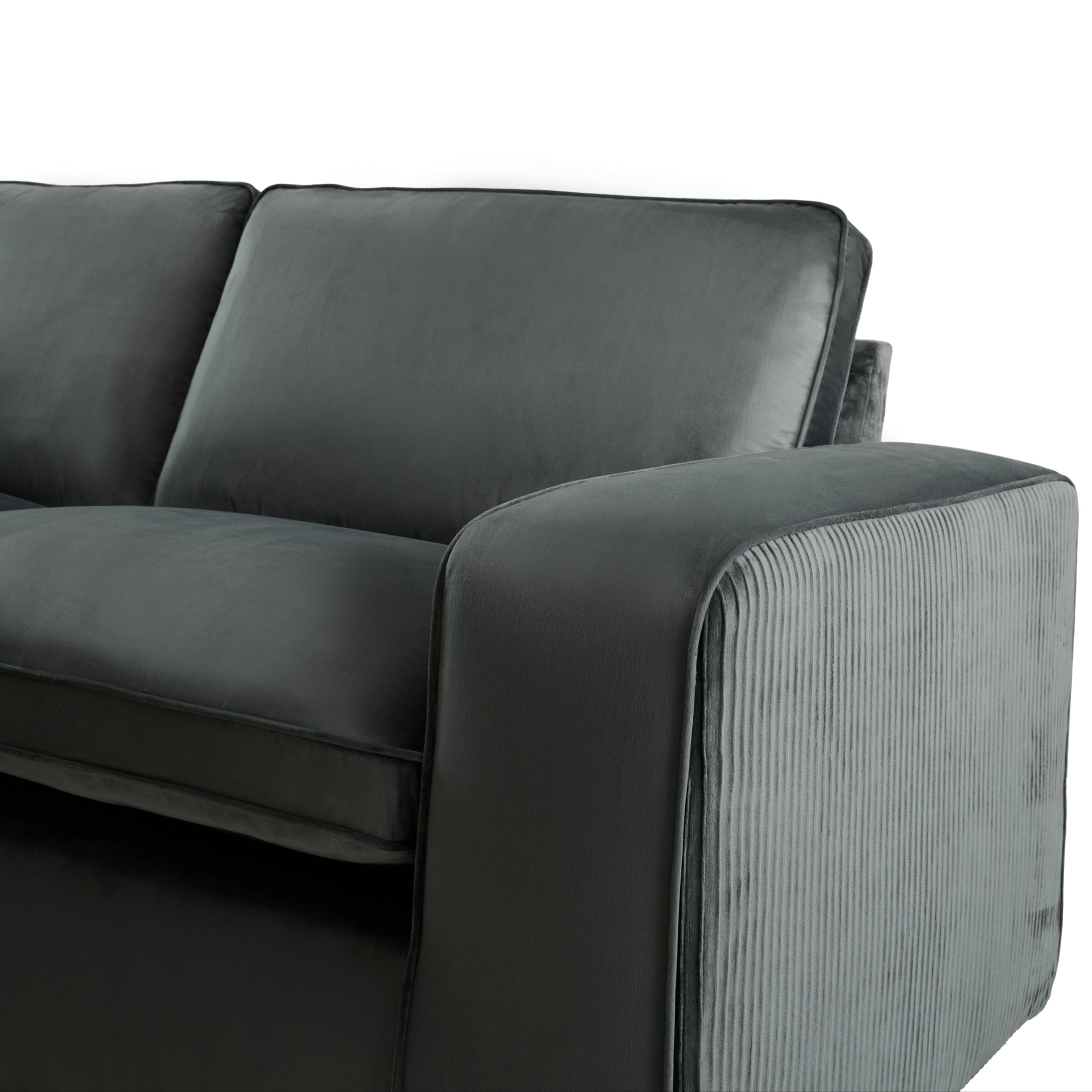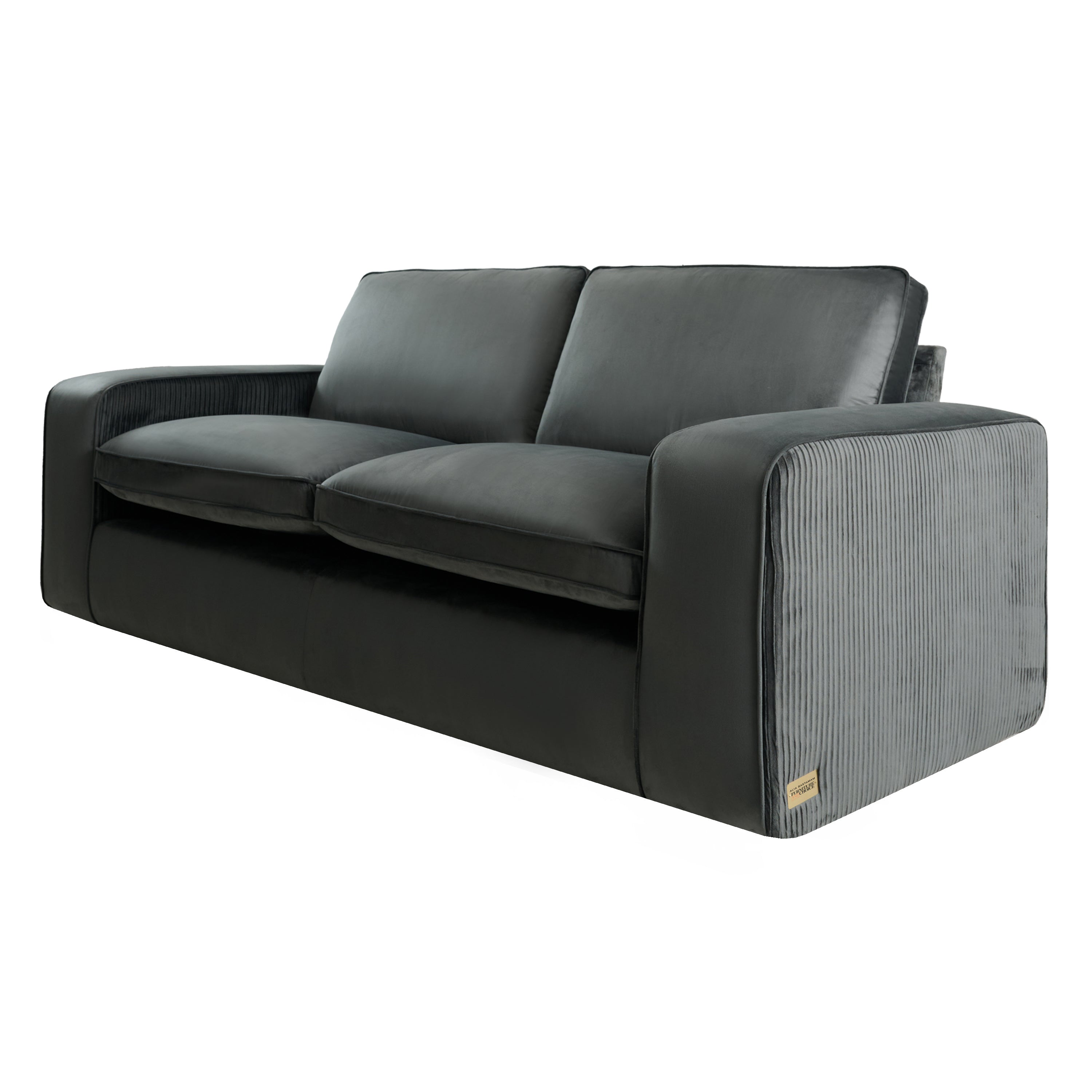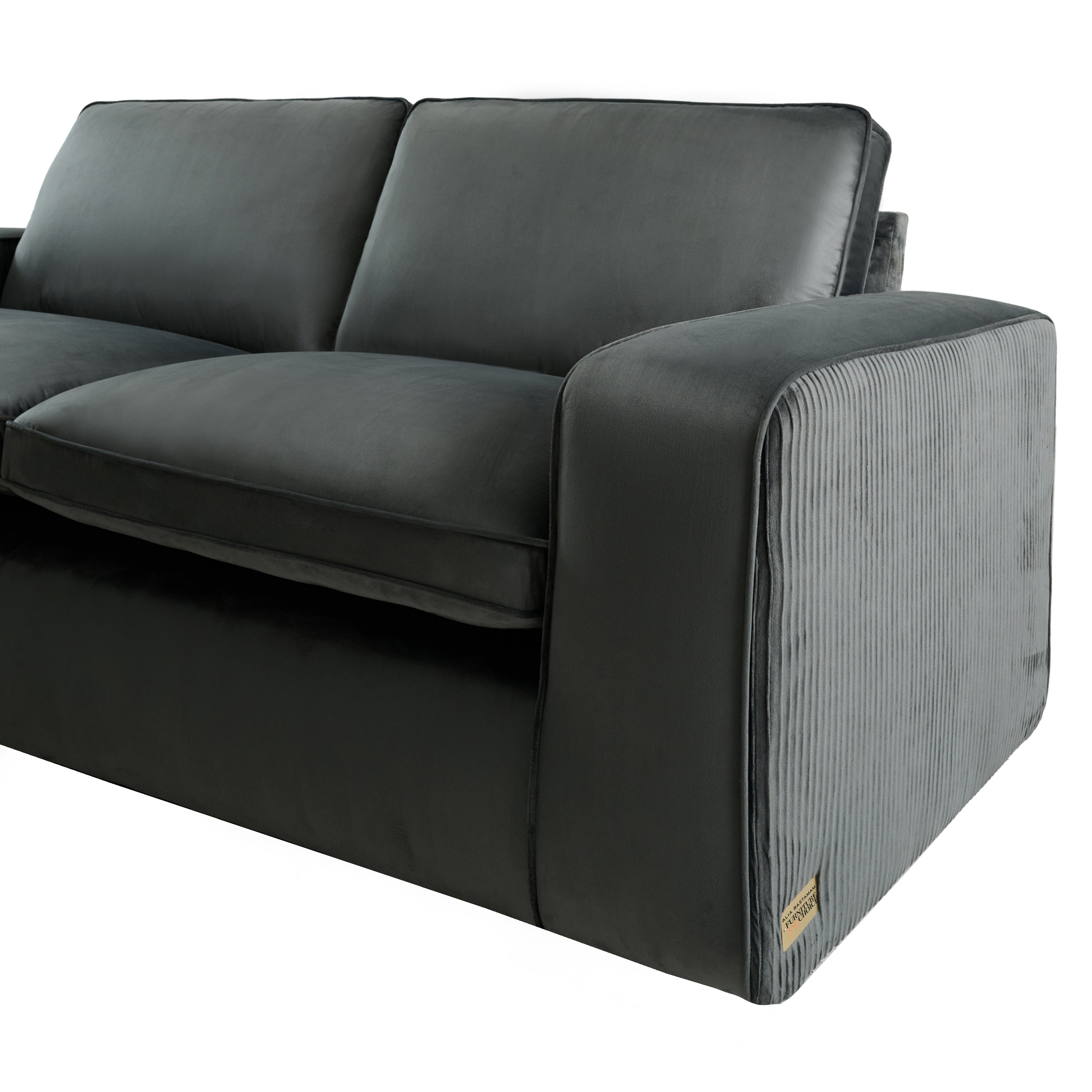 Alia Bastamam; Amaya 3 Seater Sofa, Slate Grey Pleated Premium Velvet