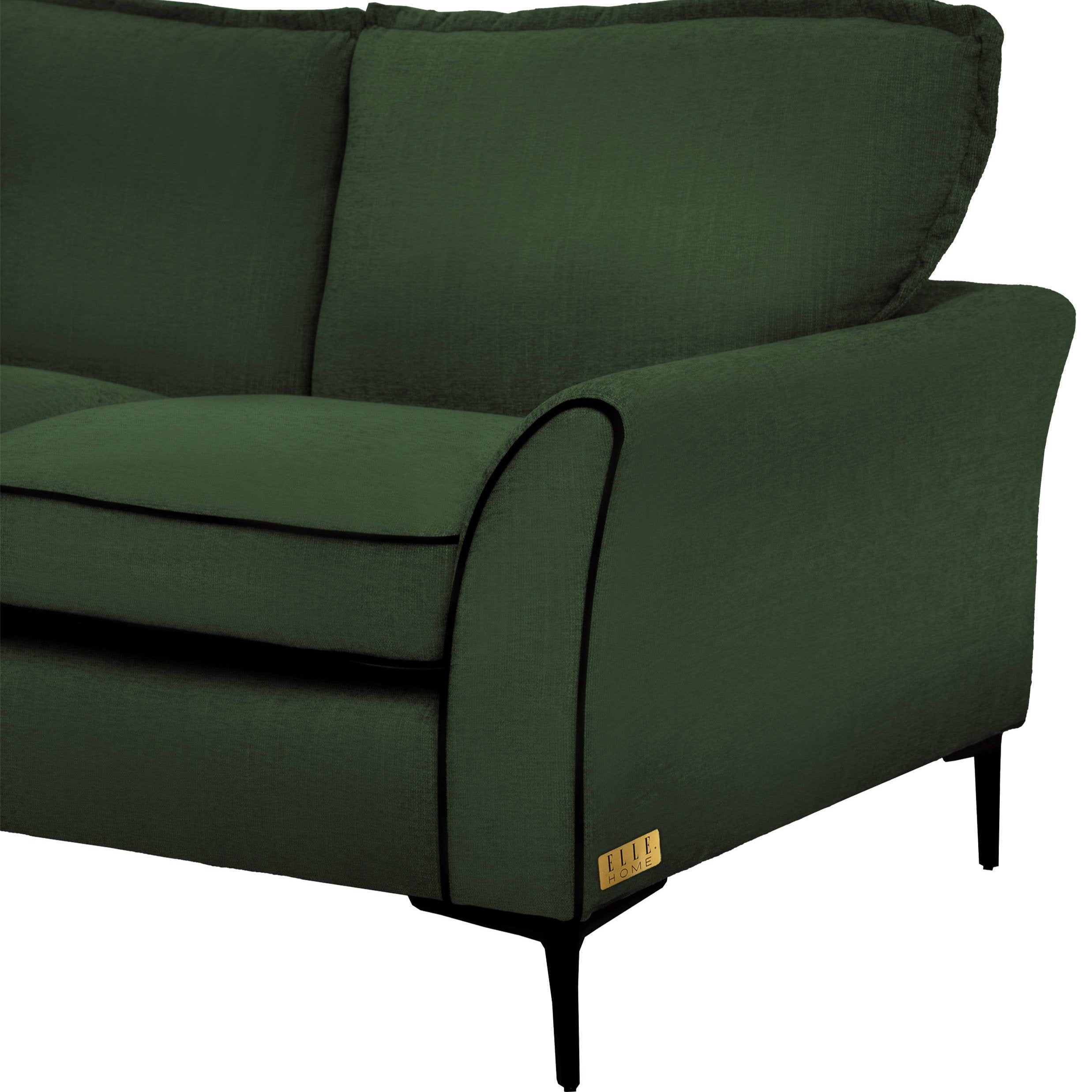 ELLE Home; Amelie 3 Seater Sofa, Moss Green Velvet