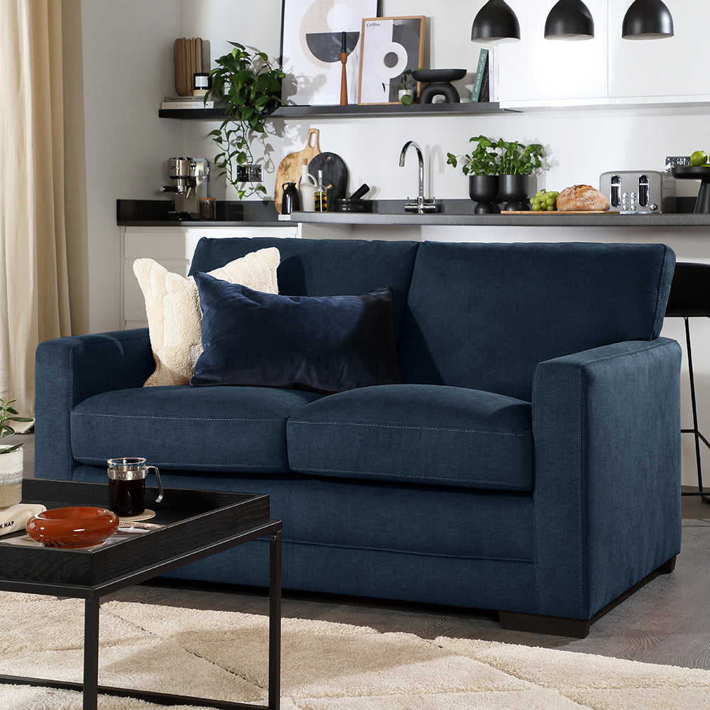 Arden 2 Seater Sofa, Navy Blue House Plush Fabric