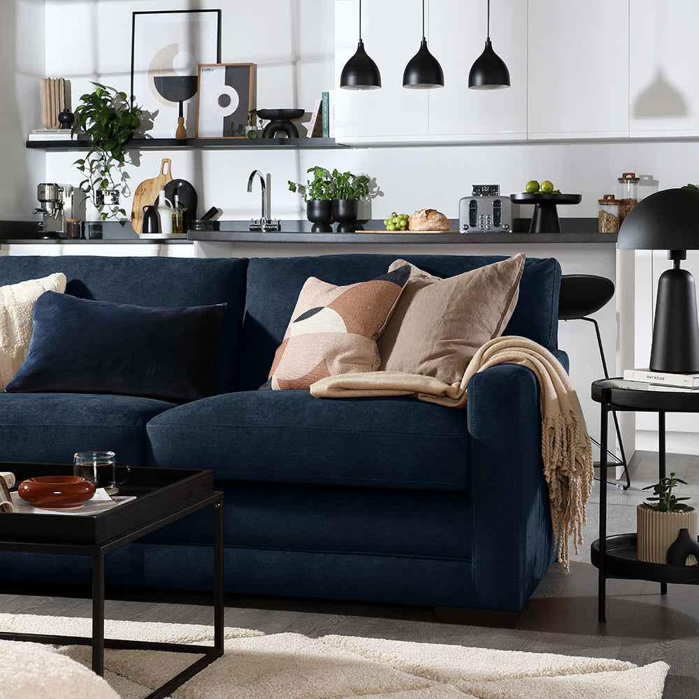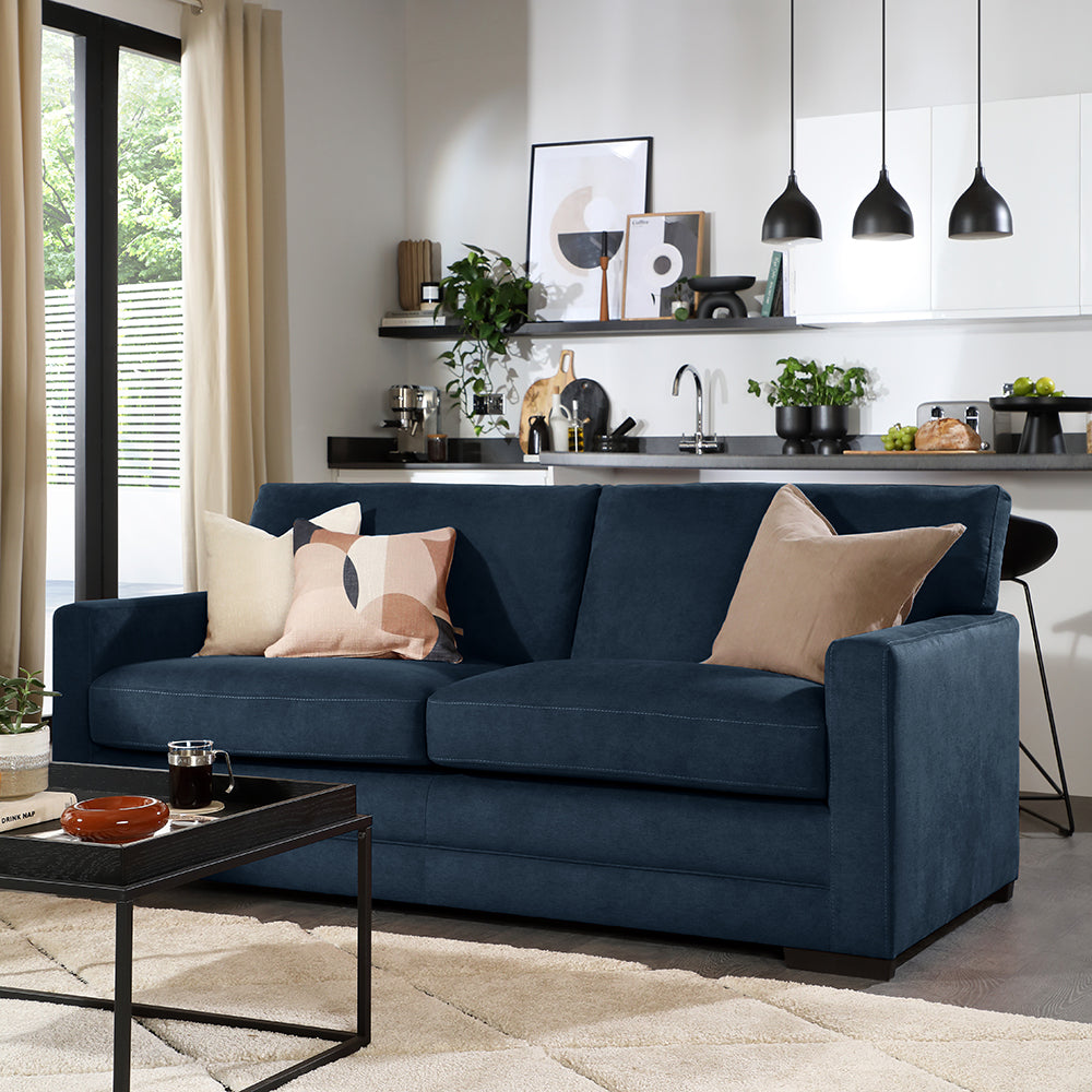 Arden 3 Seater Sofa, Navy Blue House Plush Fabric