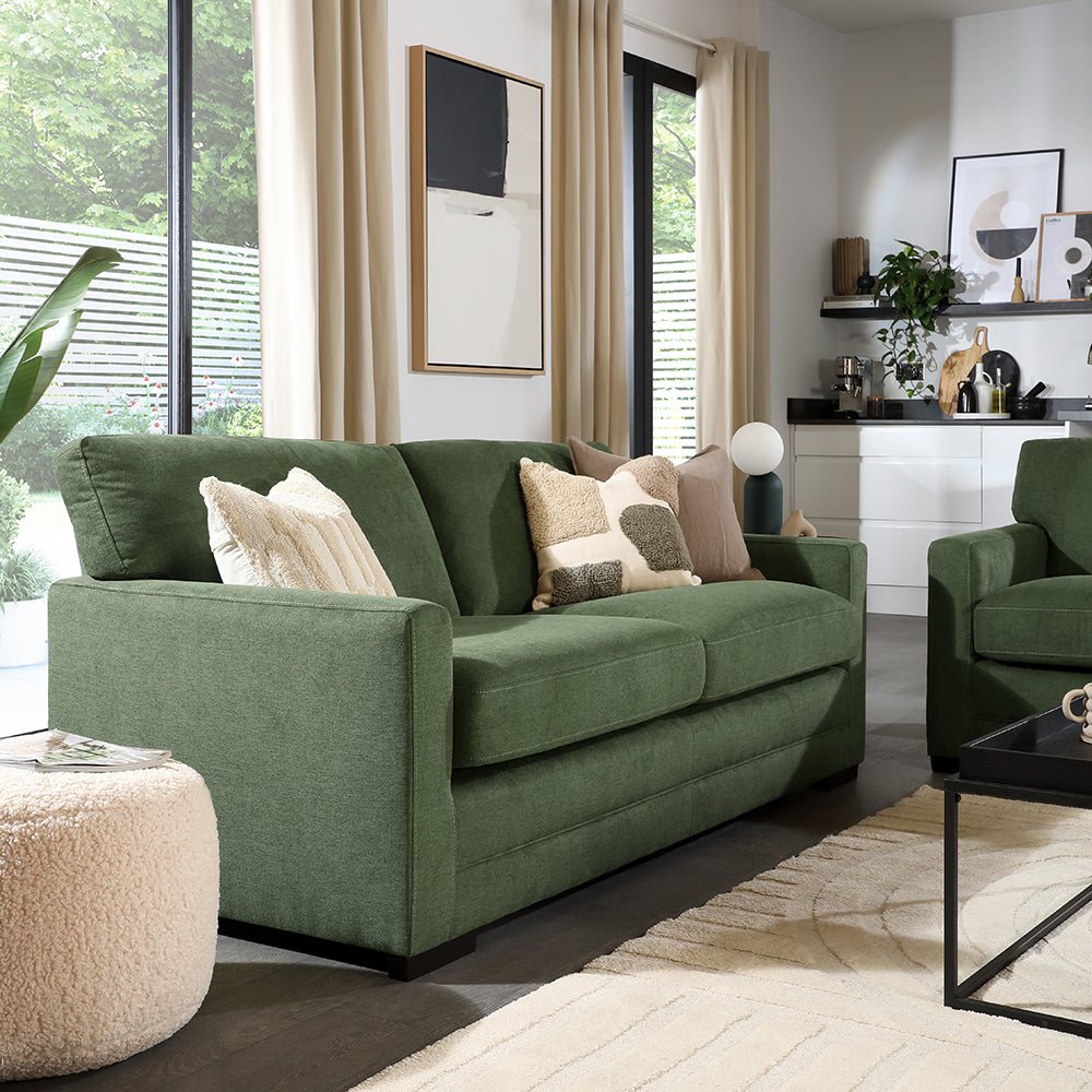 Arden 3 Seater Sofa, Moss Green House Plush Fabric