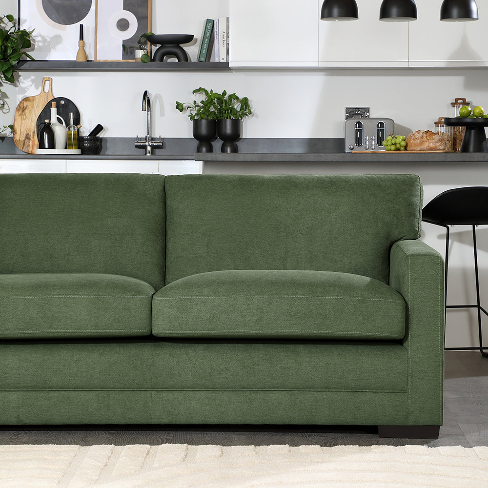Arden 3 Seater Sofa, Olive Green House Plush Fabric
