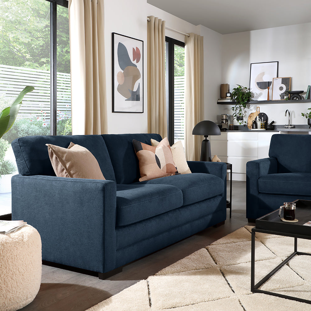 Arden 3 Seater Sofa, Navy Blue House Plush Fabric