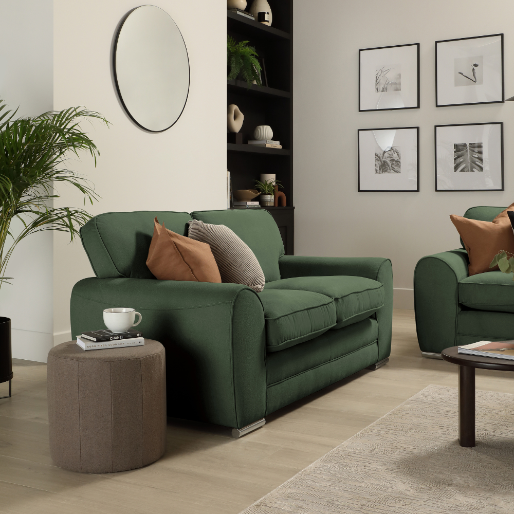 Burford 2 Seater Sofa, Moss Green House Plush Fabric