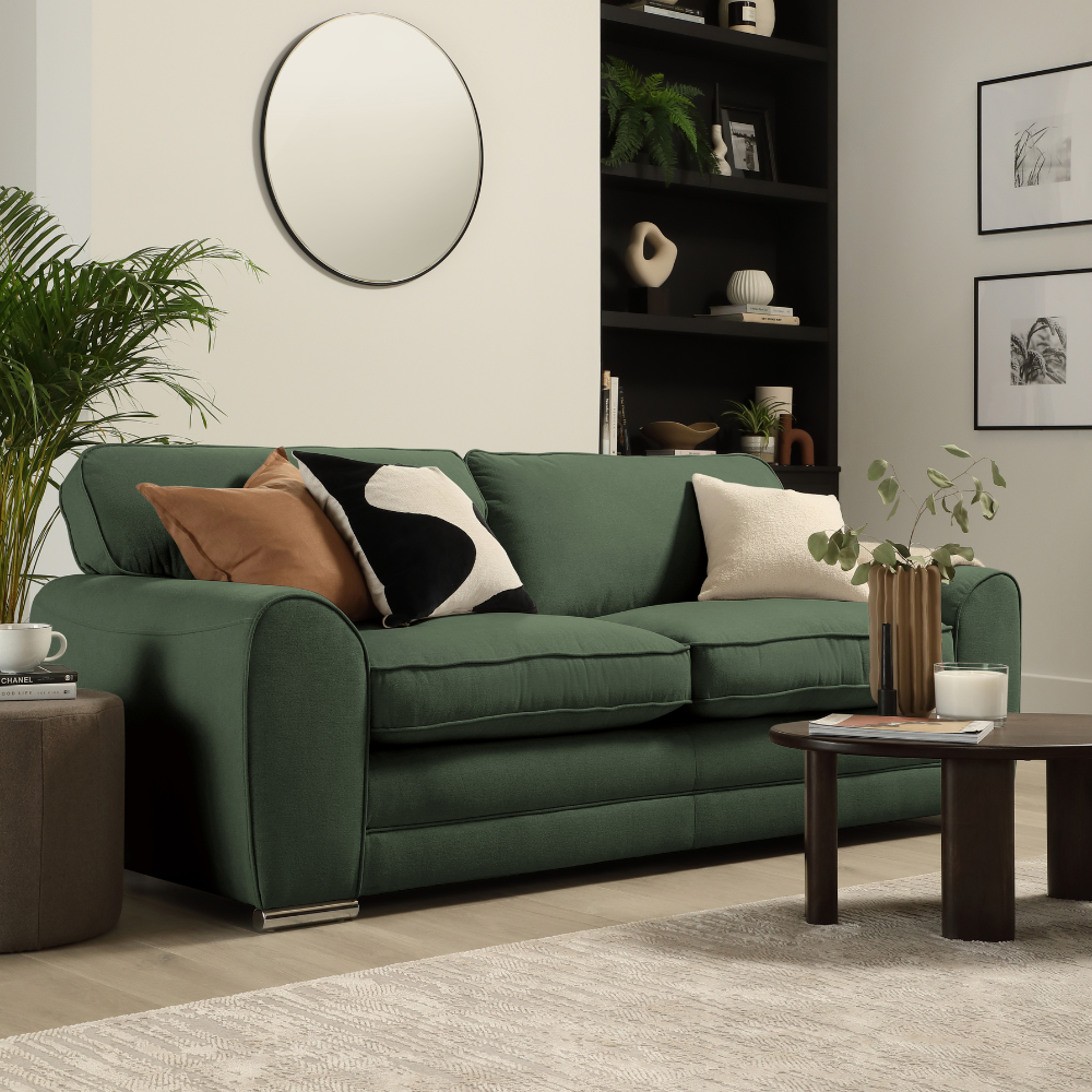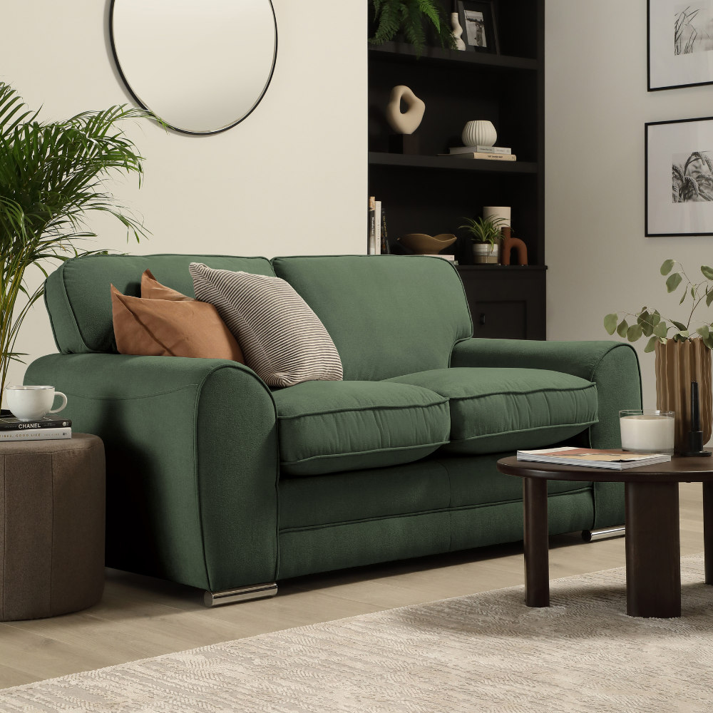Burford 3 Seater Sofa, Moss Green House Plush Fabric
