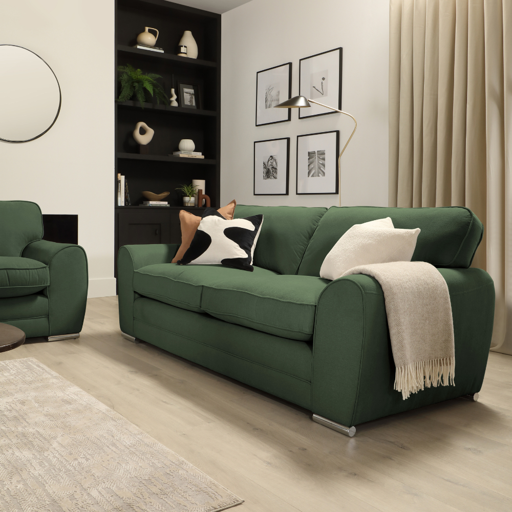 Burford 3 Seater Sofa, Moss Green House Plush Fabric