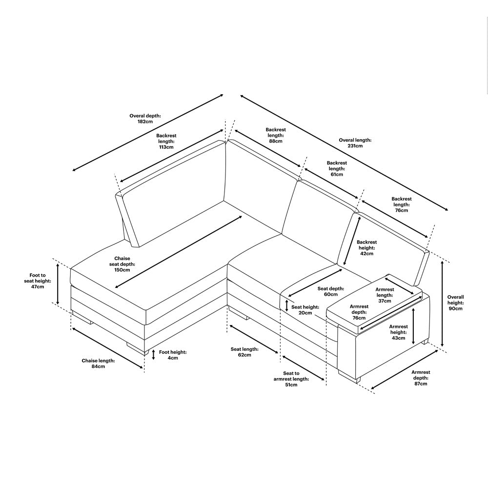 Chatham L-Shape (Right) Corner Sofa, Grey House Plush Fabric