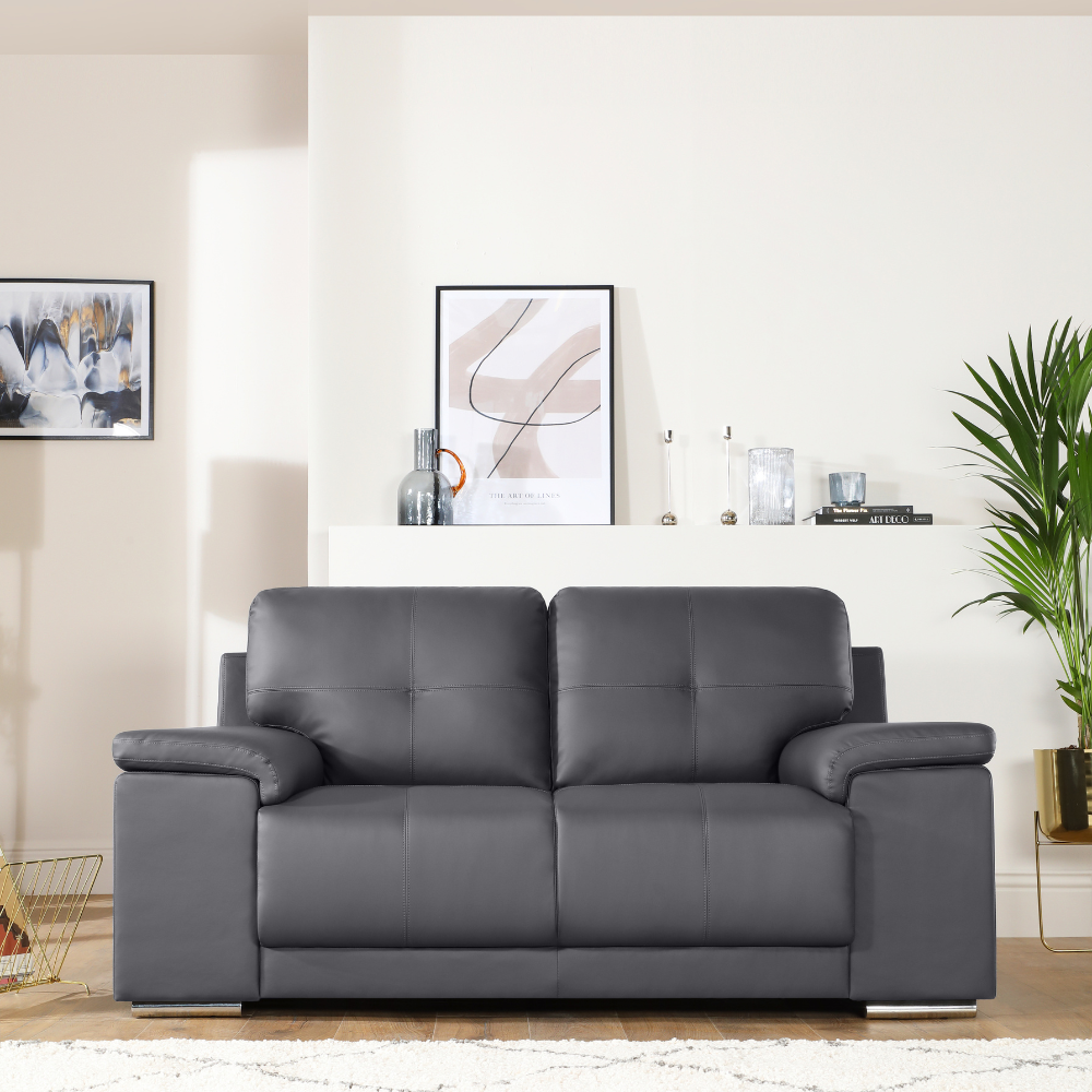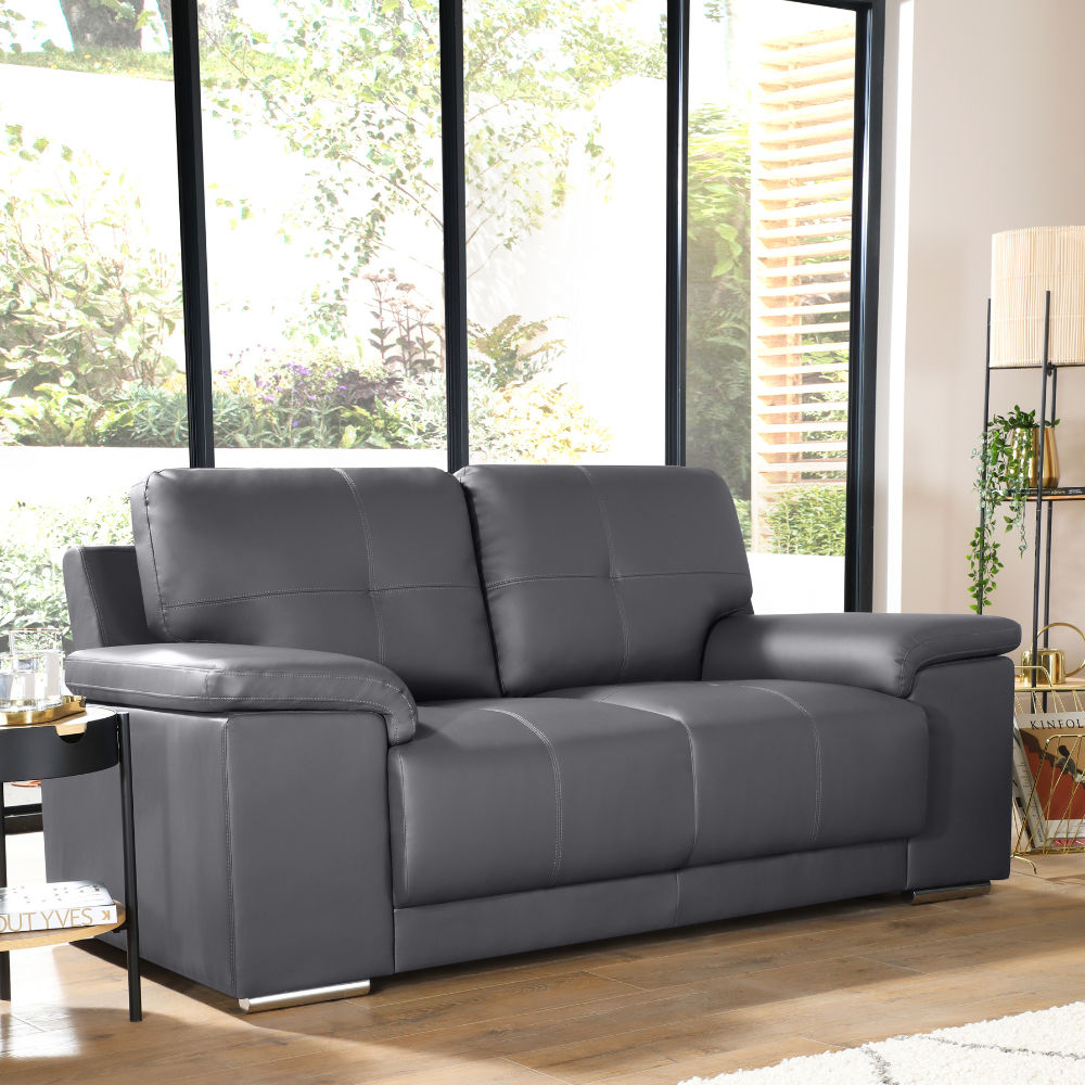 Kansas 2 Seater Sofa, Grey Premium Faux Leather