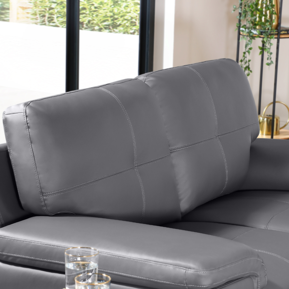 Kansas 3 Seater Sofa, Grey Premium Faux Leather