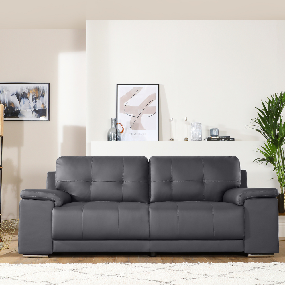 Kansas 3 Seater Sofa, Grey Premium Faux Leather