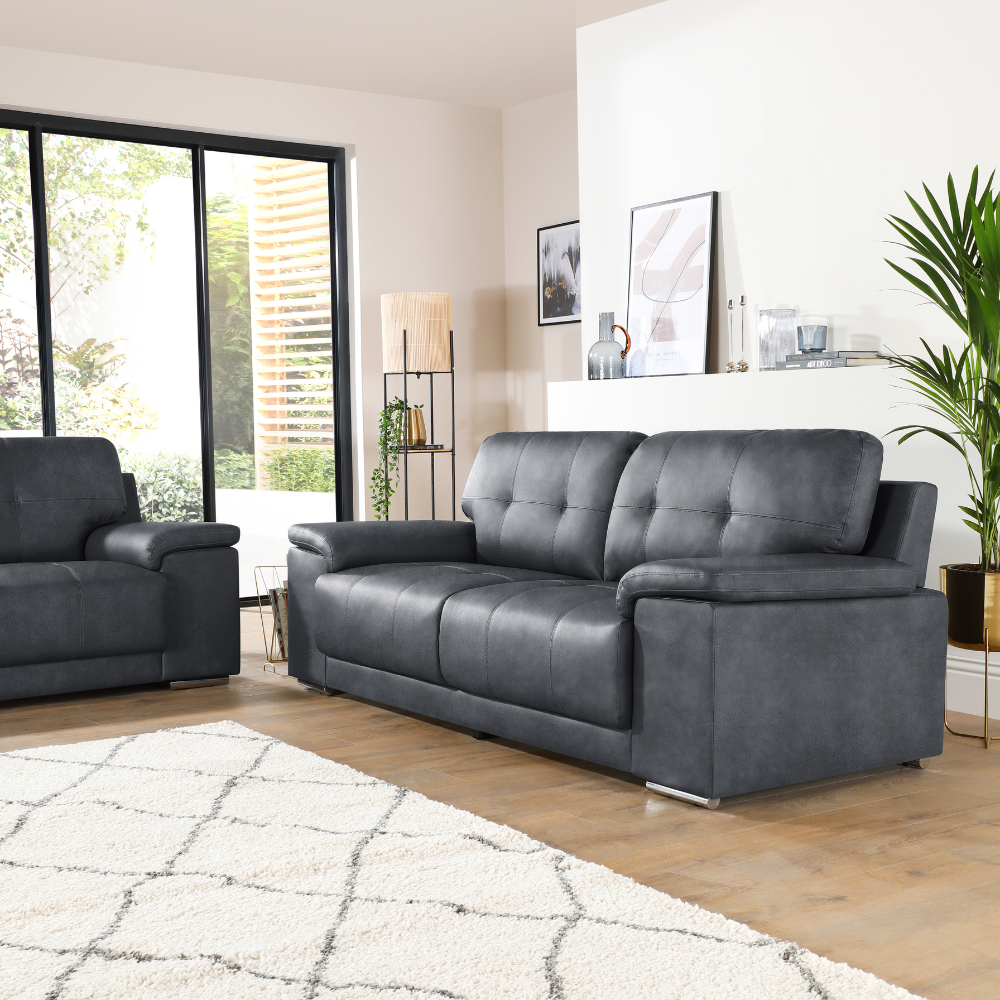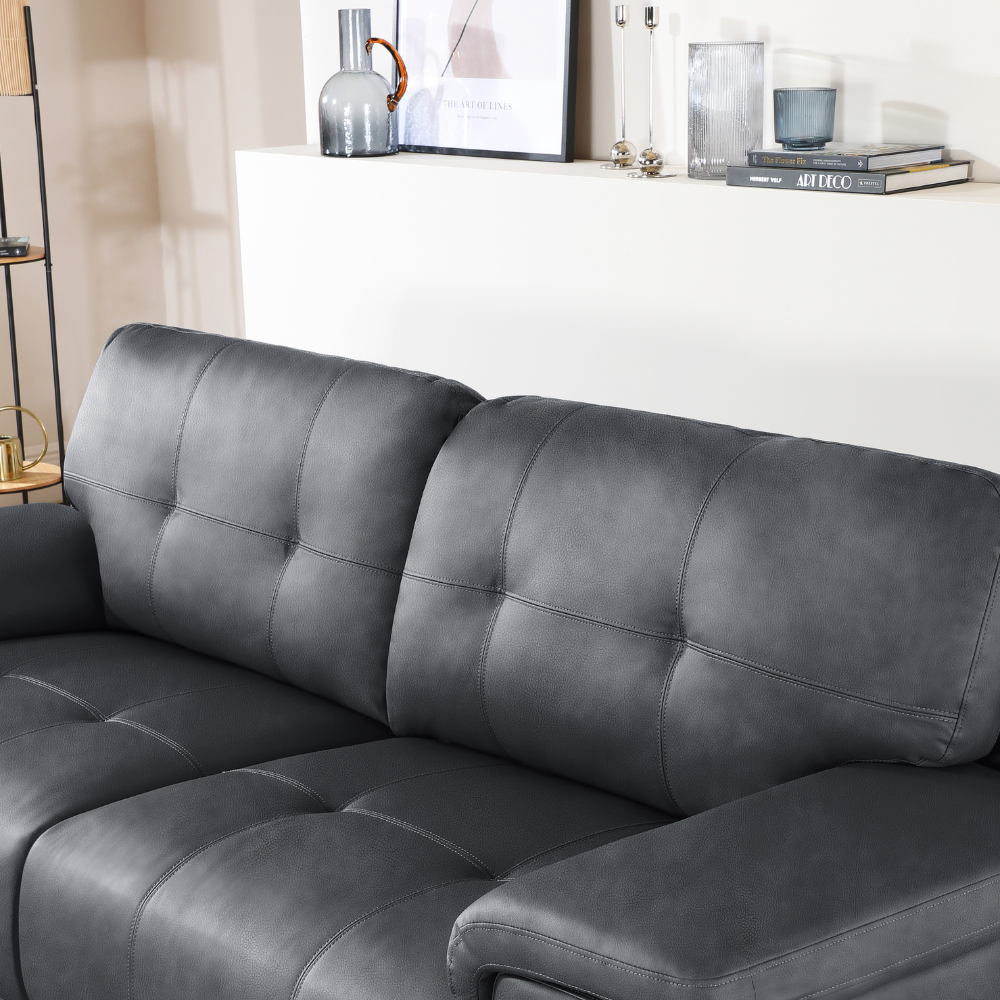 Kansas 3 Seater Sofa, Grey Premium Faux Leather
