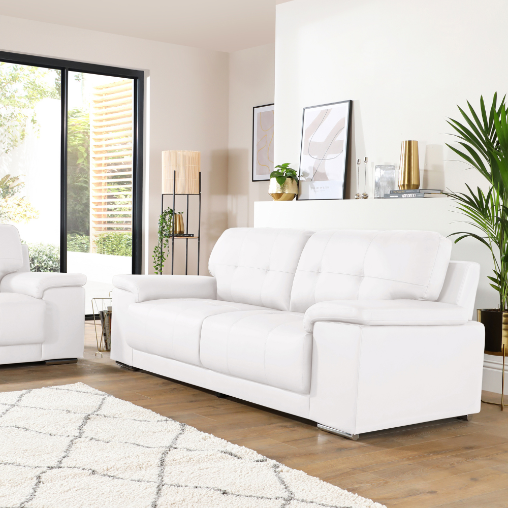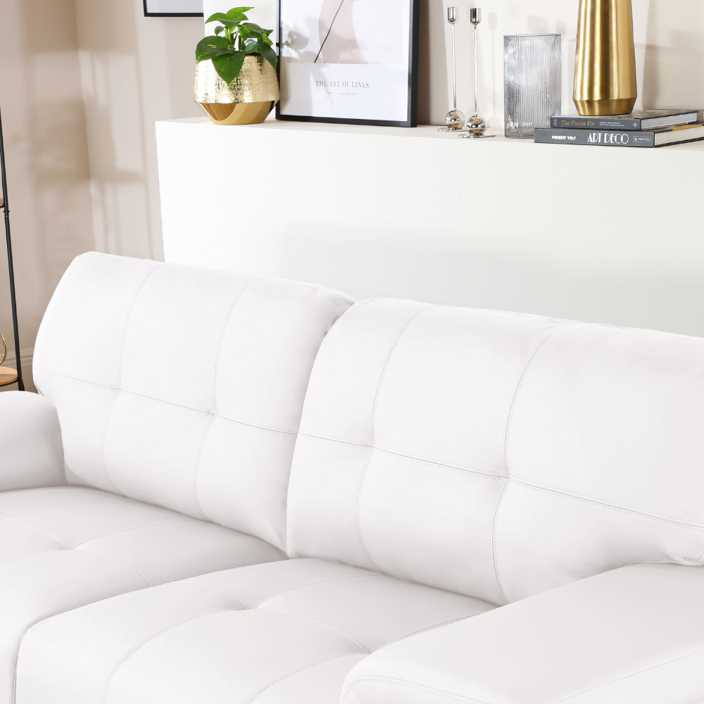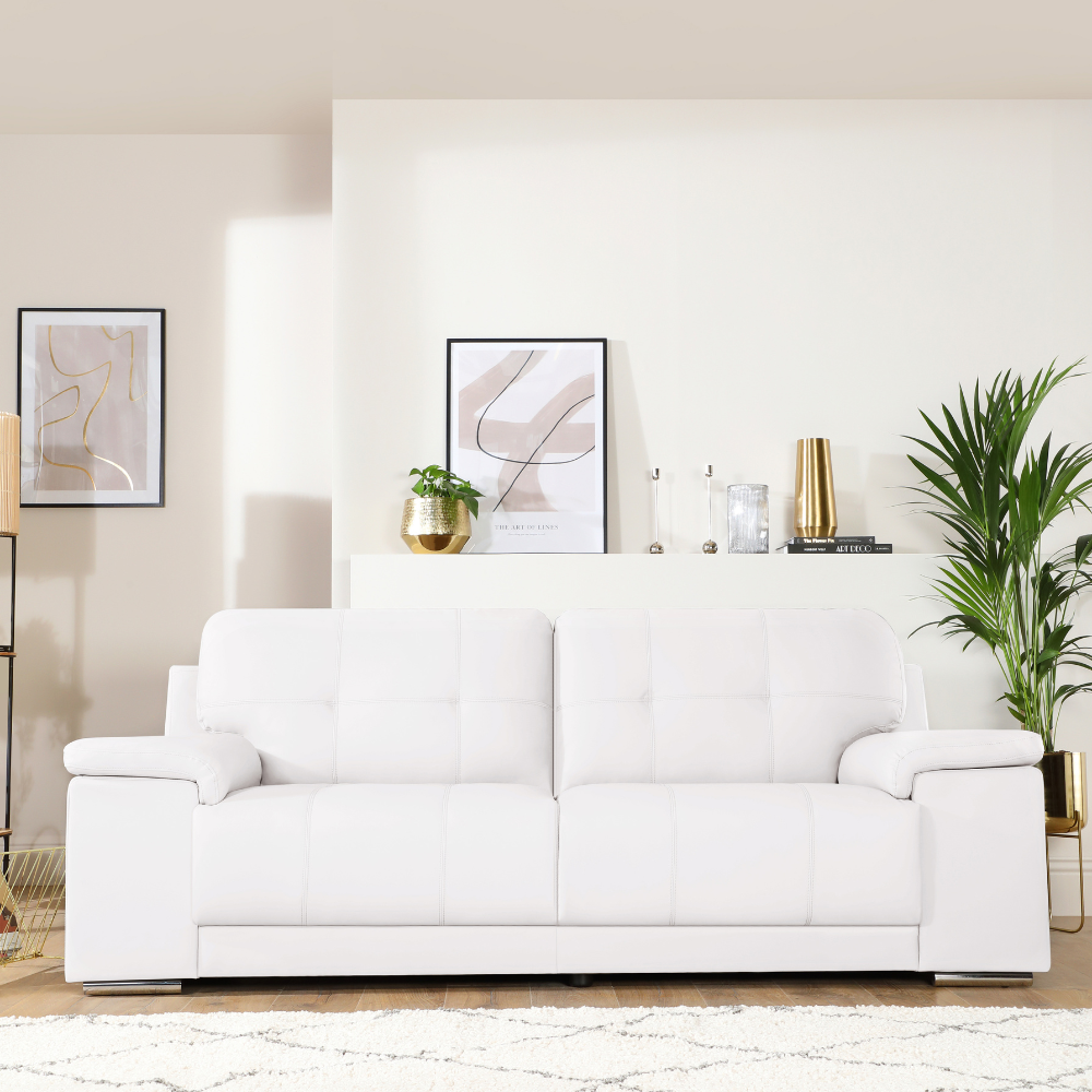 Kansas 3 Seater Sofa, White Premium Faux Leather