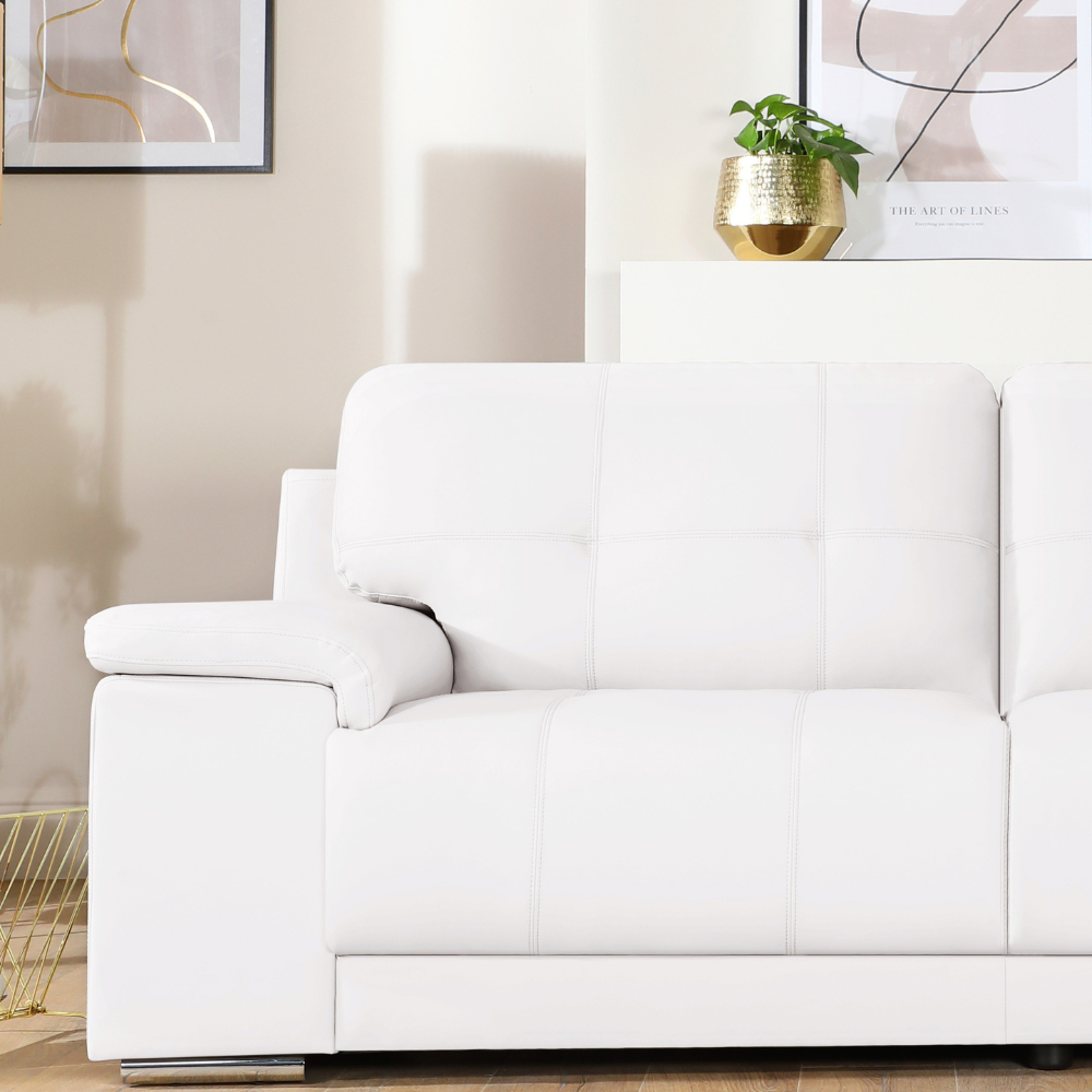 Kansas 3+2 Seater Sofa Set, White Premium Faux Leather