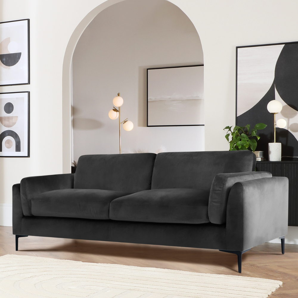 Lucia 3 Seater Sofa, Charcoal Grey House Velvet