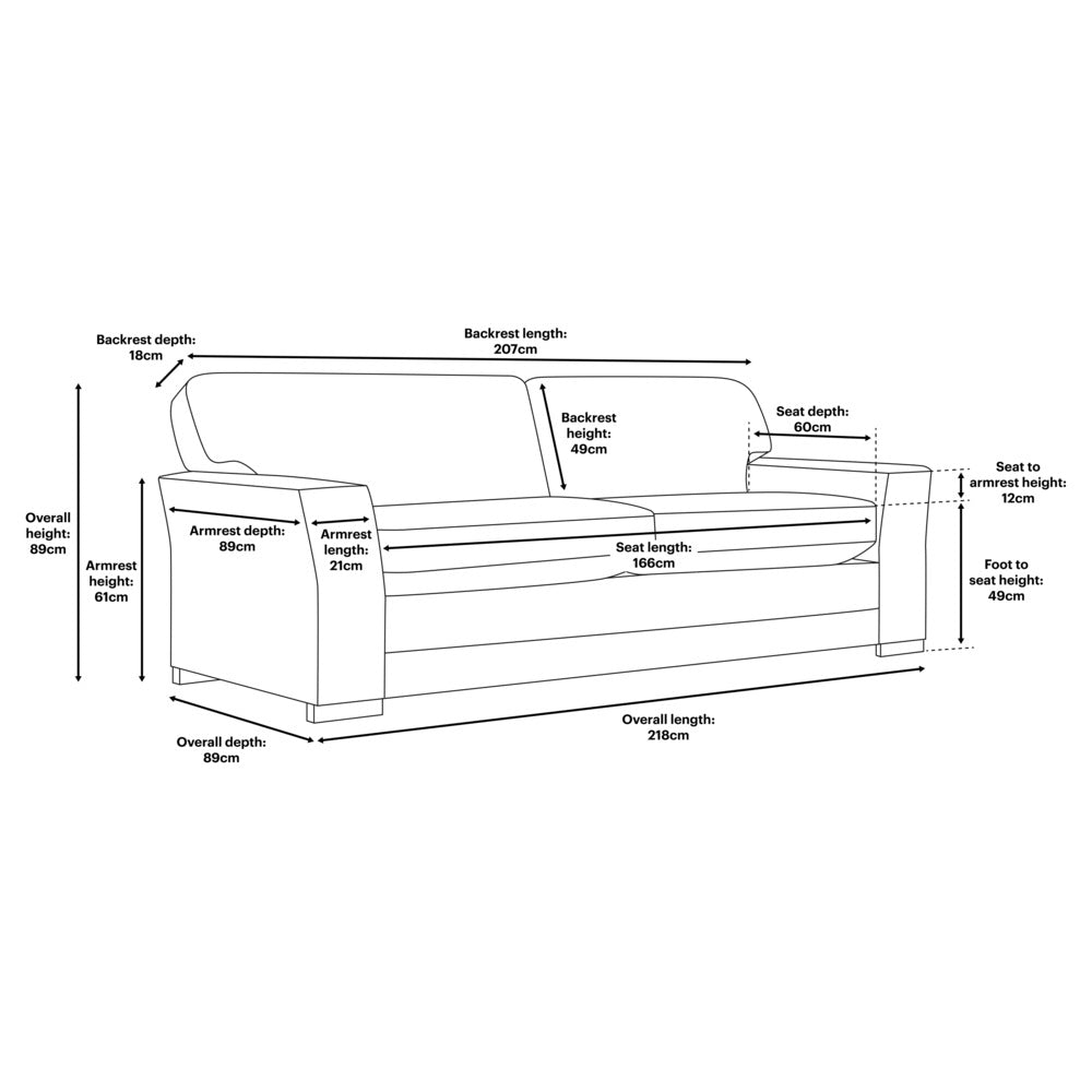 Vermont 3 Seater Sofa, Grey Aura Velvet